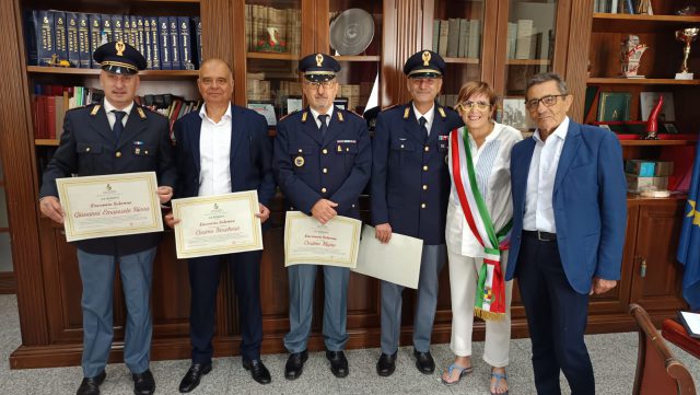 In quella data, cinque agenti della Polizia di Stato si resero protagonisti di un’operazione che ha segnato un punto fermo nella lotta alla criminalità organizzata e al traffico di stupefacenti: l’arresto di un pericoloso criminale, con il rinvenimento di una notevole quantità di sostanza stupefacente. A quegli agenti è stata conferita una benemerenza. Si tratta di Vincenzo Pipino (Ispettore), Cosimo Noschese (Assistente Capo Coordinatore), Giovanni Emanuele Ricca (Sovrintendente), Cosimo Nigro (Vice Ispettore) e Riccardo Buccella (Assistente Capo Coordinatore)
