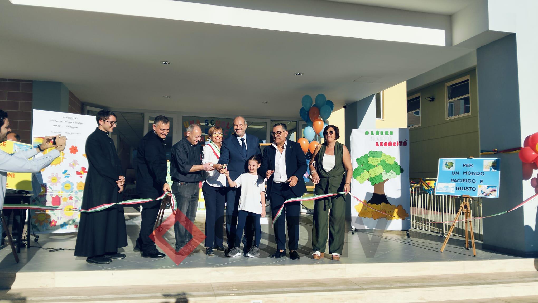 Le nuove aule della scuola Siani e Montalcini sono state benedette da padre Ezio Miceli che ha tagliato il nastro insieme alla sindaca di Battipaglia, Cecilia Francese, Mimì Minella dirigente dell’ufficio scolastico per l’ambito territoriale di Salerno, e il dirigente dell’istituto scolastico Comprensivo Fiorentino, Dario Palo.