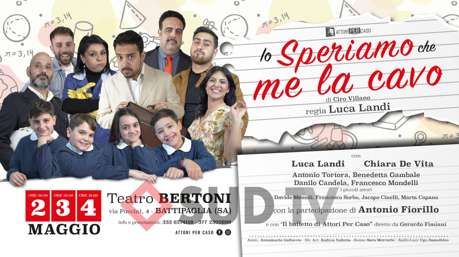Home Cultura ed Eventi Battipaglia, teatro: “Io speriamo che me la cavo”Cultura ed EventiBattipaglia, teatro: “Io speriamo che me la cavo”30 Aprile 2025Facebook Twitter Pinterest WhatsApp Sarà “Io speriamo che me la cavo”, adattamento teatrale del libro di Marcello D’Orta, a chiudere la seconda edizione di “Portami a Teatro”, rassegna del Bertoni di Battipaglia. Lo spettacolo è di Ciro Villano per la regia di Luca Landi.