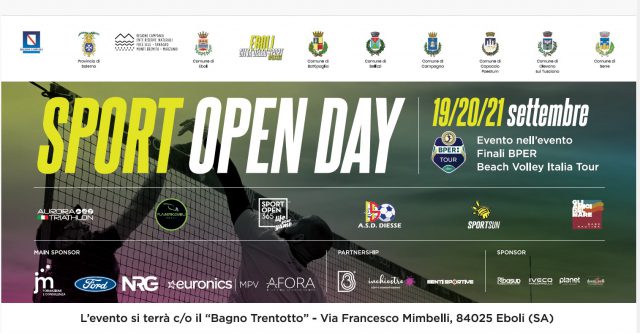 Torna anche quest’anno, tra gli appuntamenti più attesi a chiusura dell’estate, Sport Open Day, manifestazione giunta alla sua XVIII edizione, in programma il 19, 20 e 21 settembre presso Bagno 38, a Marina di Eboli.
