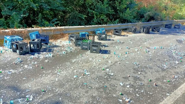 Un tir, per ragioni ancora da accertare, ha perso il carico che ha invaso la carreggiata della Strada provinciale 30. Sull’asfalto si sono riversate cassette contenenti bottiglie in vetro che hanno provocato non pochi disagi alla viabilità.