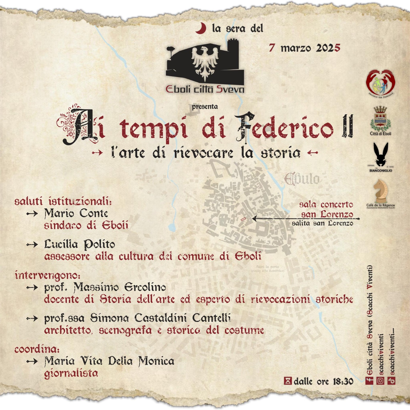 “Ai tempi di Federico II, l’arte di rievocare la storia”, il titolo dell’eventi di venerdì 7 marzo: il seminario inserito nell’ambito di Eboli Città Sveva.