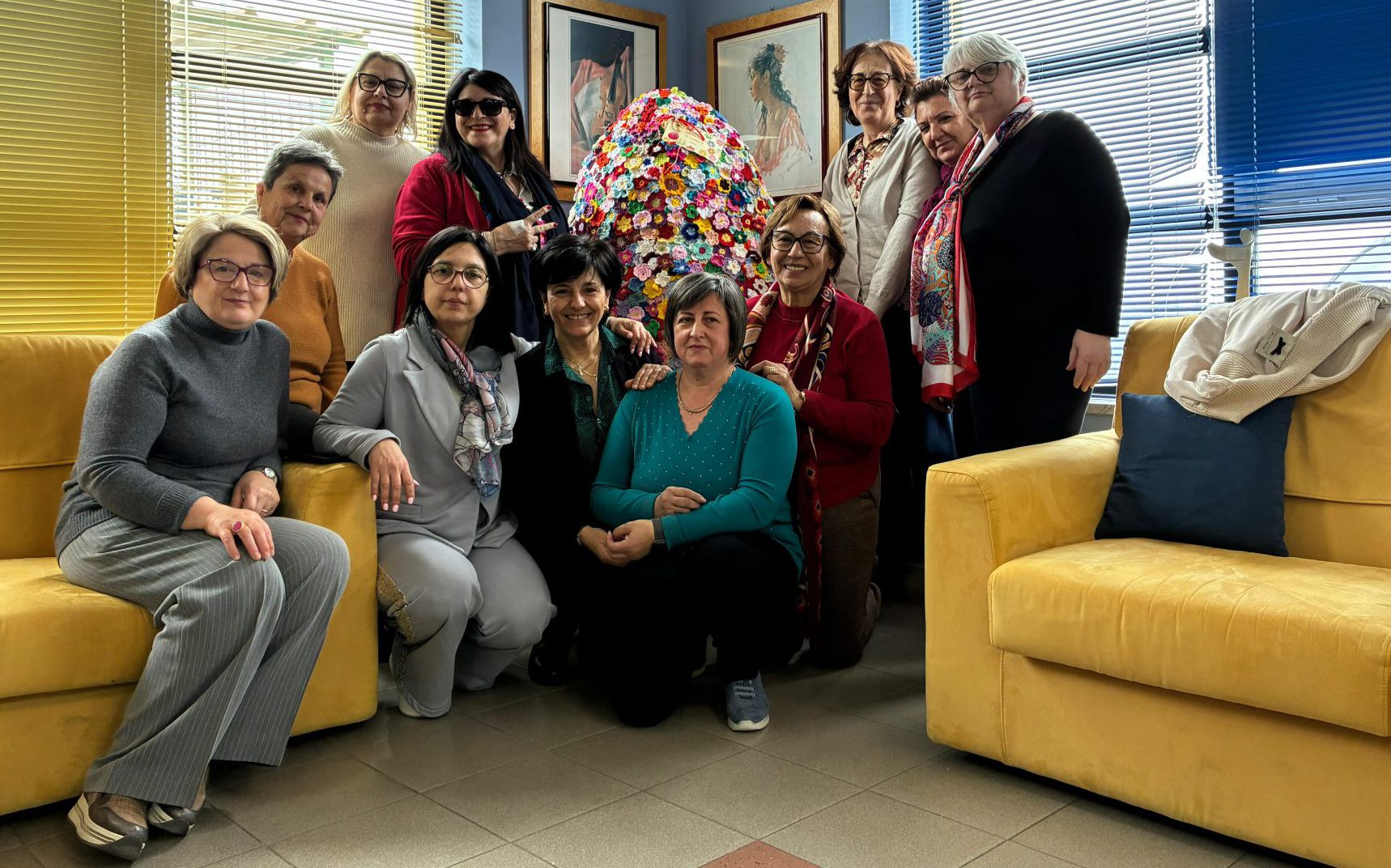 C’è un uovo di Pasqua che non si mangia, non si scarta e non si dimentica, è arrivato questa mattina all’Hospice Il Giardino dei Girasoli di Eboli: un uovo alto un metro e 63 centimetri, composto da 2.500 fiori realizzati a mano. E’ il dono del Gruppo Uncinetto Rosa dell’associazione Noi Amici dell’Hospice e dell’Ospedale di Eboli, un’opera collettiva, costruita filo dopo filo, grazie a chi ha donato la lana, a chi ha intrecciato i fiori e a chi, come le Uncinettine di Lorylù di Altavilla Silentina, ha reso possibile un lavoro tanto imponente quanto simbolico.