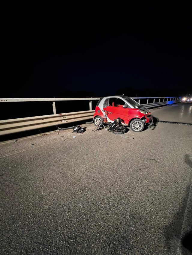Il ciclista è rimasto incastrato sotto il veicolo. Sul posto i vigili del fuoco che hanno soccorso il ferito liberandolo dall’auto che lo ha travolto, la polizia municipale e i carabinieri.