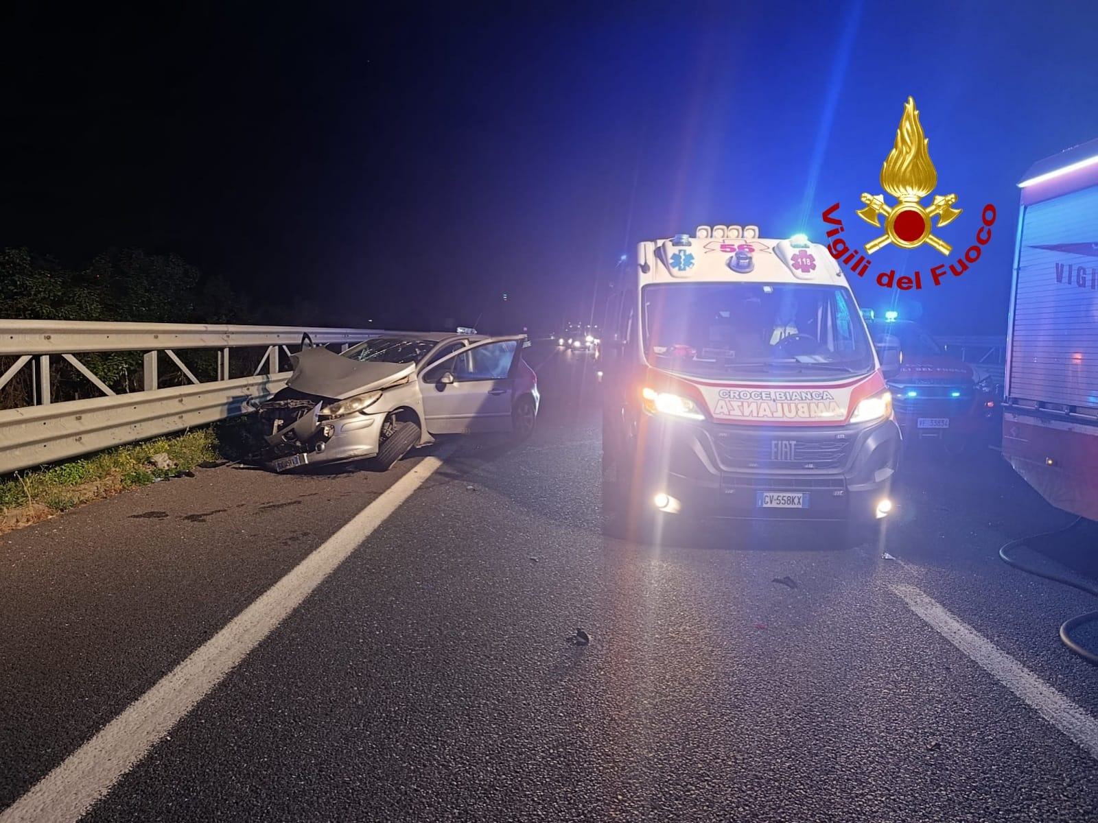 Il sinistro si è verificato precisamente al chilometro 24+400, coinvolgendo due autovetture: una Citroen C3 e una Peugeot 208. Per cause ancora in corso di accertamento da parte delle autorità competenti, i due veicoli sono entrati in collisione; l’impatto è stato tale da provocare il ribaltamento della Citroen C3 sulla carreggiata.