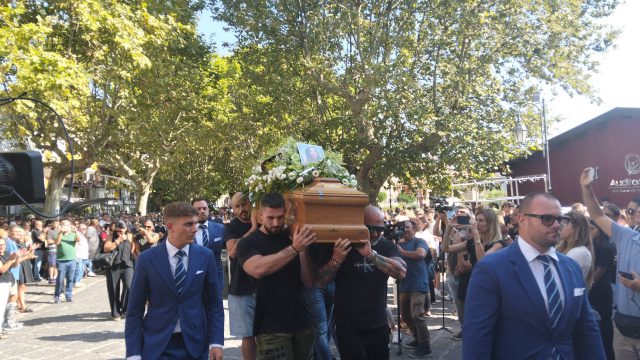 Montecorvino Rovella: colma di persone la chiesa Santi Pietro e Paolo dove oggi pomeriggio sono stati celebrati i funerali di Tina Sgarbini, 47enne, uccisa sabato mattina da Christan Perisco arrestato per omicidio e rinchiuso in carcere.