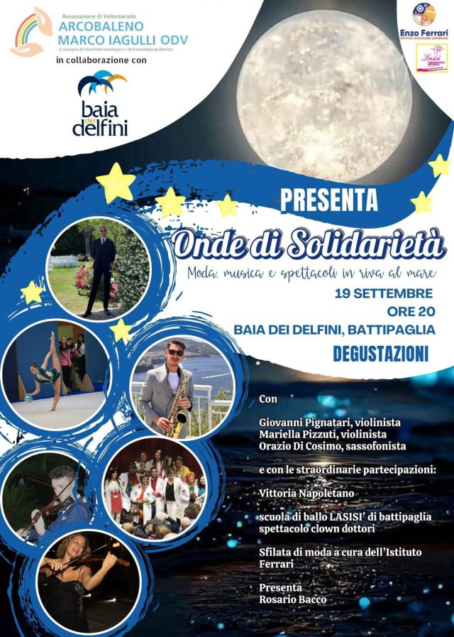 “Onde di Solidarietà” si propone come un appuntamento unico, capace di intrecciare spettacolo e beneficenza in uno scenario incantevole, con il mare come sfondo e la luna come compagna. Un’occasione per sostenere l’impegno dell’associazione Arcobaleno Marco Iagulli ODV a favore dei bambini oncologici e dell’oncologia pediatrica, dimostrando ancora una volta come la comunità possa unirsi in nome della speranza e della condivisione.
