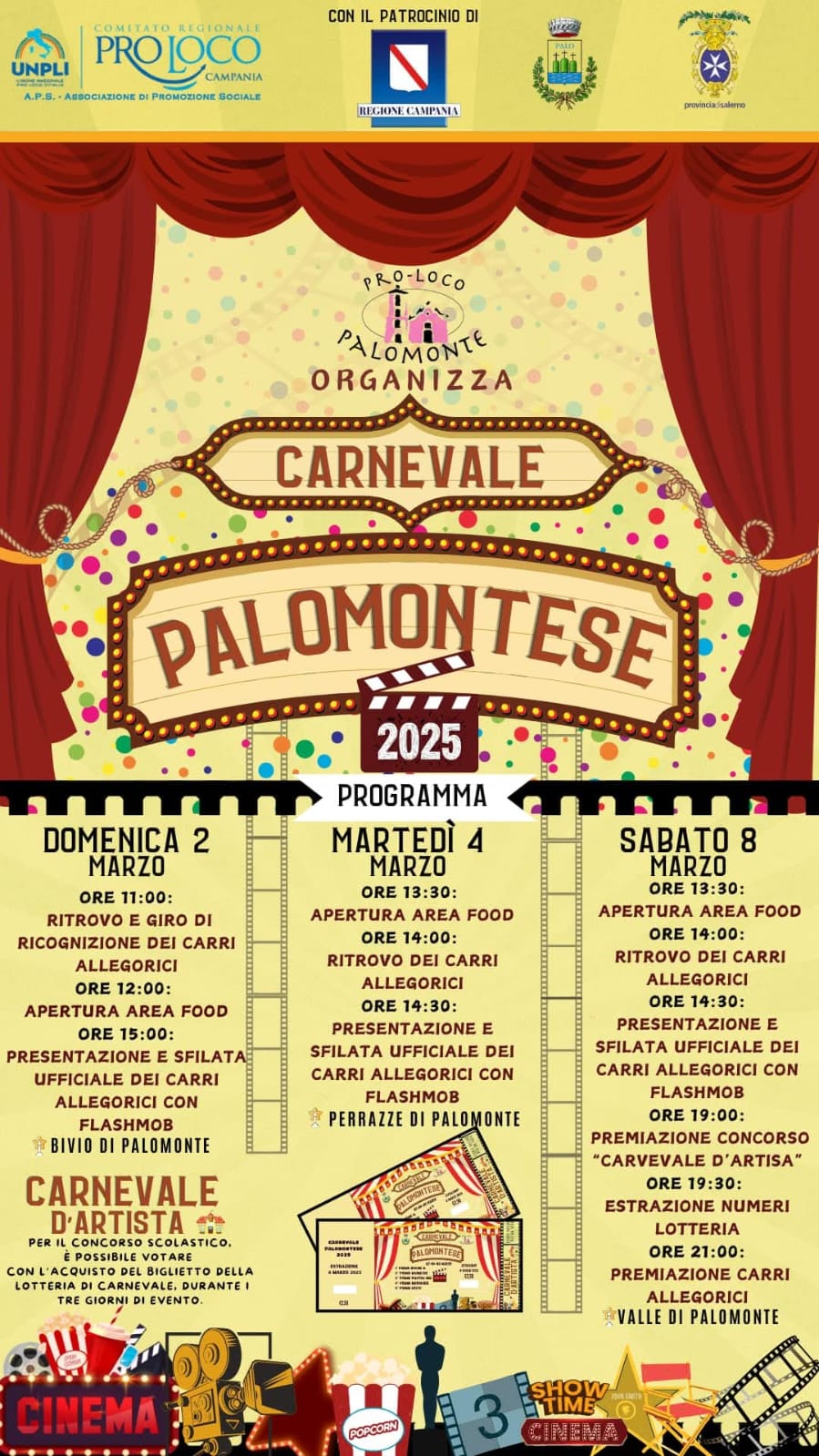 Il tutto, accompagnato dall’area food che, per l’edizione 2025, vedrà la somministrazione al pubblico dell’antico piatto palomontese del cavatiello di Ze’Nunziata. Tra i film cinematografici scelti per il carnevale, Palomonte omaggerà Cleopatra, il Gladiatore, Toy Story, La Bella e la Bestia, Super Mario, Inside Out e tanti altri famosi film –“Sono orgoglioso di coordinarne la regia- spiega Gentile-cinema e teatro- aggiunge l’attore originario proprio di Palomonte dove vive- insegnano la bellezza, soprattutto ai più giovani che trasformeranno i carri allegorici in veri e propri set dove gli spezzoni dei film prenderanno vita grazie ai flash mob”.