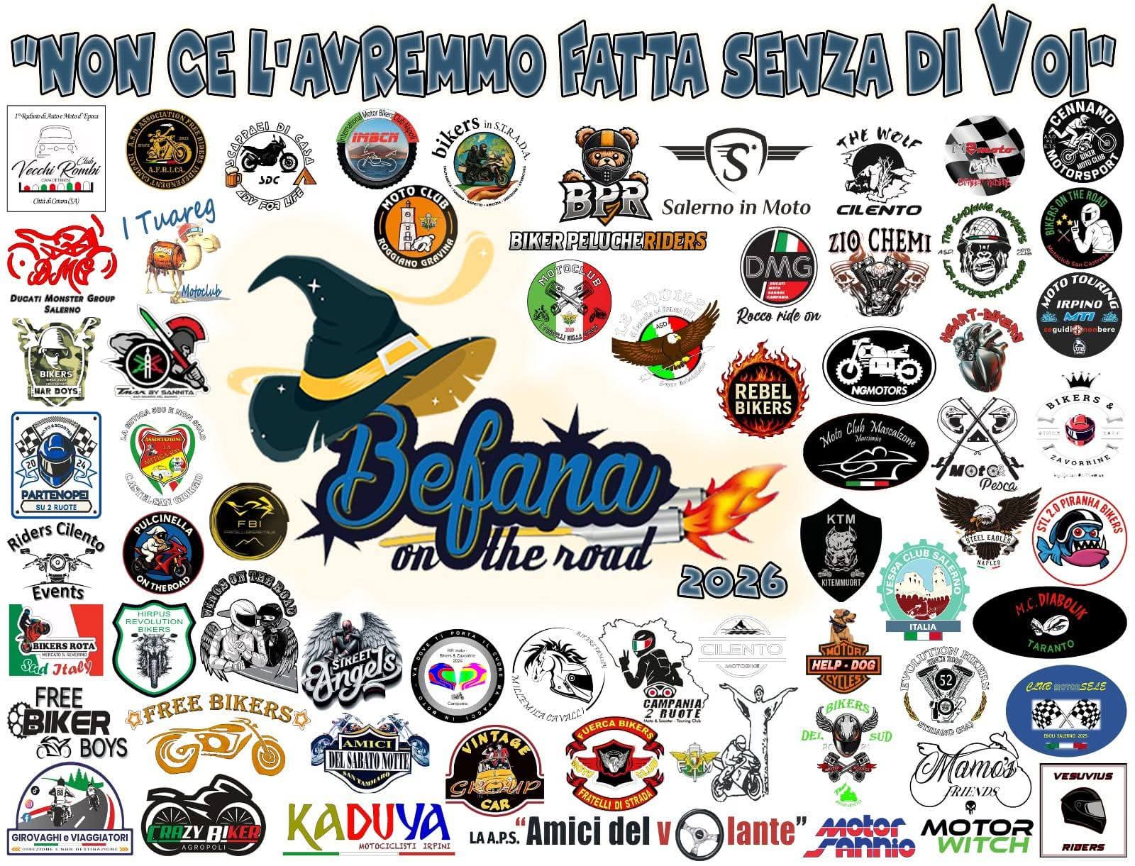 Befana on the Road è il titolo della manifestazione che si è svolta ieri a Pontecagnano Faiano a cui hanno partecipato 64 associazioni di motociclisti che fanno beneficenza.