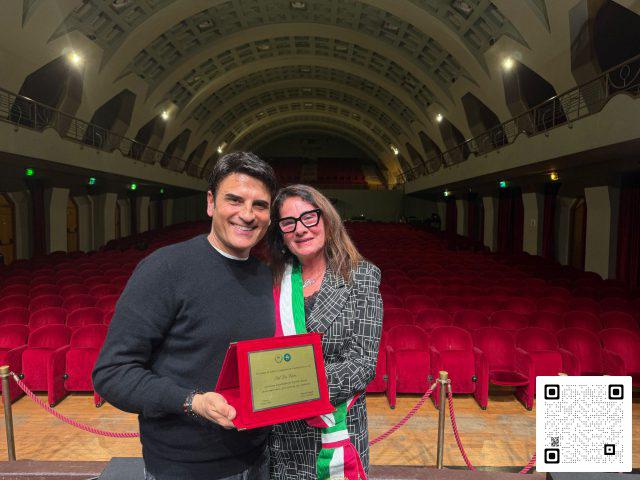 Home Cultura ed Eventi Sal Da Vinci: “Condividiamo il bene della vita”Cultura ed EventiSal Da Vinci: “Condividiamo il bene della vita”10 Marzo 2025Facebook Twitter Pinterest WhatsApp Il cantante Sal Da Vinci è stato insignito di una targa, donata dal vice sindaco Memoli, per celebrare la sua carriera.